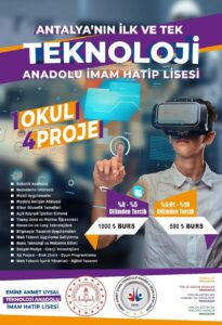 Antalya’nın ilk ve tek Teknoloji Anadolu İmam Hatip Lisesi olma üzelliğini taşıyan okul, 30 öğrenci kontenjanı ile Bilgisayar Tasarım Uygulamaları, Robotik Kodlama, Nesnelerin İnterneti, Mobil Uygulamalar, Web Tabanlı Uygulama Geliştirme, Siber Güvenlik Temelleri, Nano Teknoloji ve Malzeme Bilimi, Açık Kaynak İşletim Sistemi, Ağ Projesi, Blok Zincir, Oyun Programlama, Web Tabanlı İçerik Yönetimi, Dijital Tasarım, Yapay Zeka ve Makine Öğrenmesi Havacılık ve Uzay Teknolojileri, Sosyal Medya, Enerji Teknolojileri, Mesleki Gelişim Atölyesi gibi derslerinin yer alacağı sınıflar ile eğitim vermeye başlayak.
